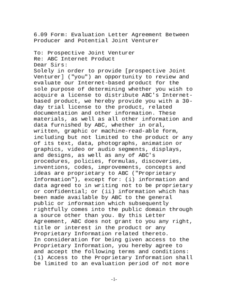 Get the free Evaluation Letter Agreement Between Producer and Potential Joint Venturer template