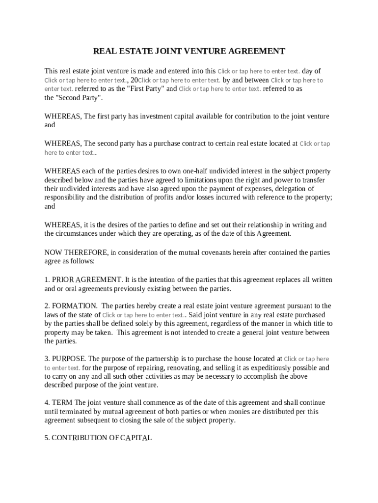 Comprehensive Guide to Real Estate Joint Venture Form on pdfFiller