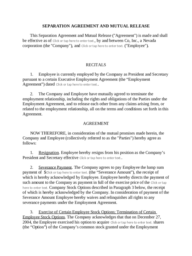 Ensure every relevant detail is included, such as severance pay and mutual release clauses.