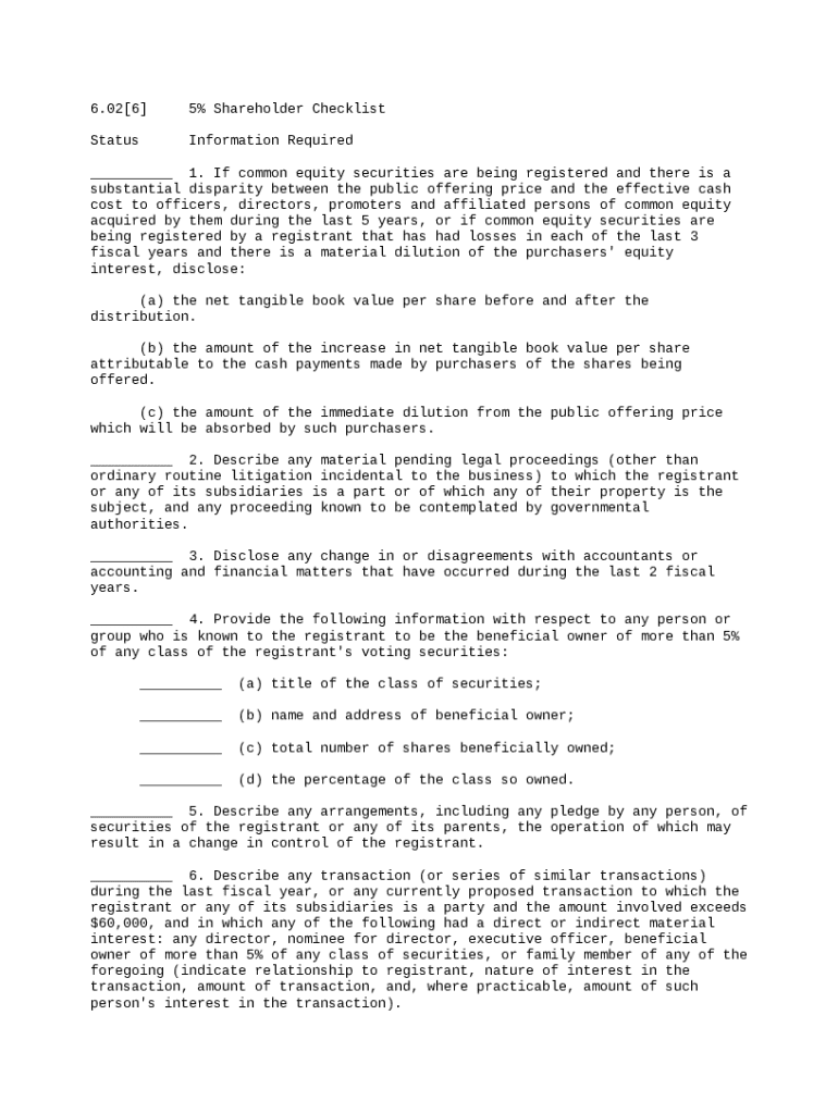 Five Percent Shareholder Checklist Form Guide