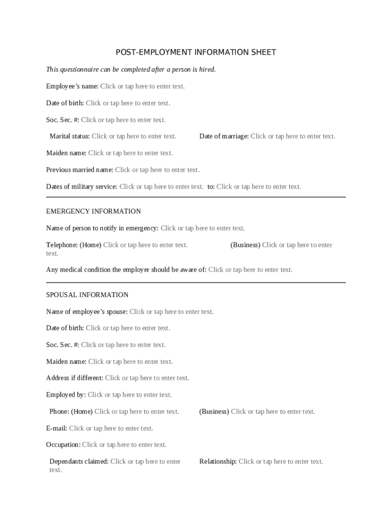 Comprehensive Guide to the Post-Employment Information Sheet Form