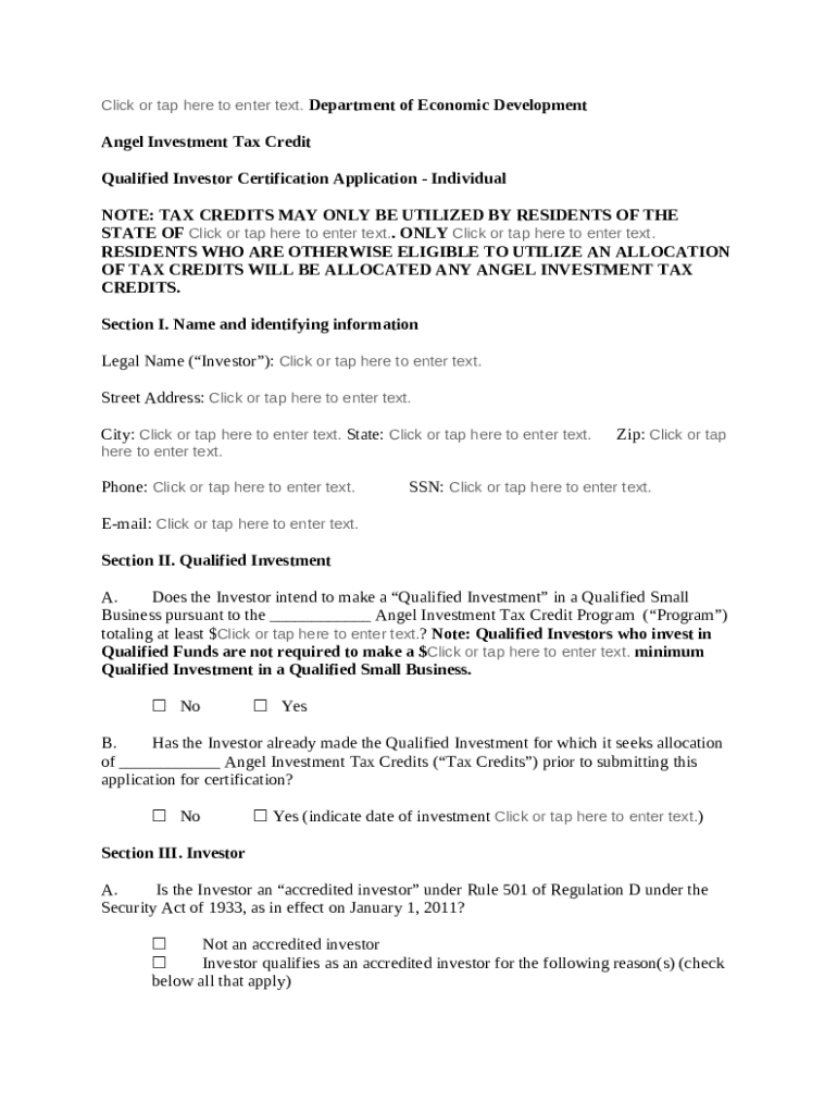 The qualified investor certification application must be completed by individuals or entities seeking to leverage the tax benefits provided by the Angel Investment Tax Credit Program.