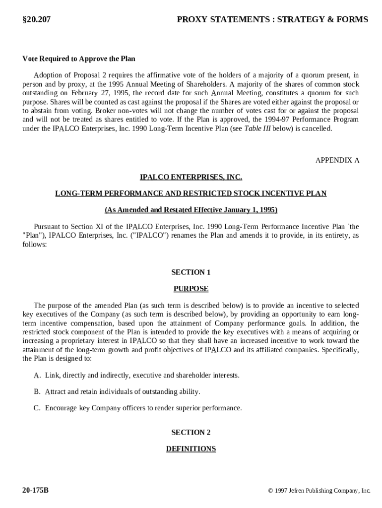 Get the free Long Term Perance and Restricted Stock Incentive Plan of Ipalco Enterprises, Inc. te...