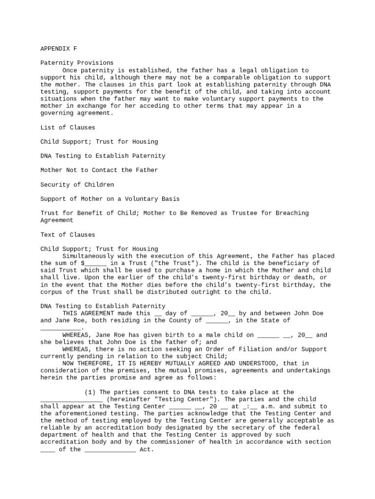 Get the free Paternity Provisions template