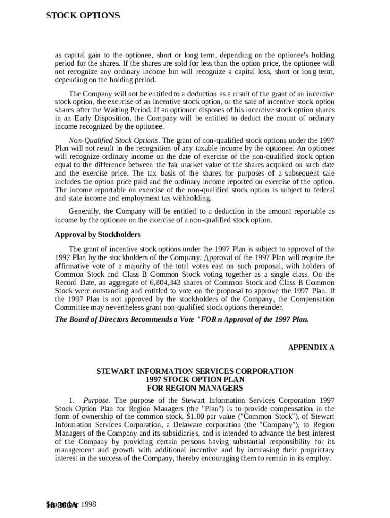 Get the free Stock Option Plan of Stewart Ination Services Corp. for Region Managers template