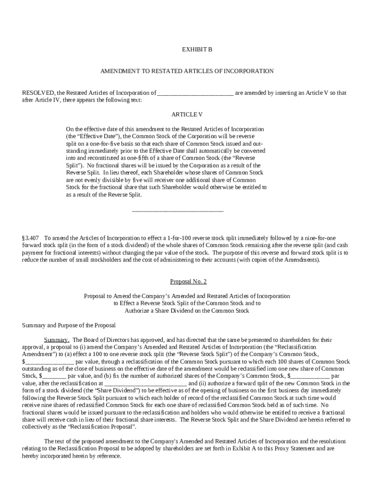 Get the free Proposal to amend articles of incorporation to effect a reverse stock split of commo...