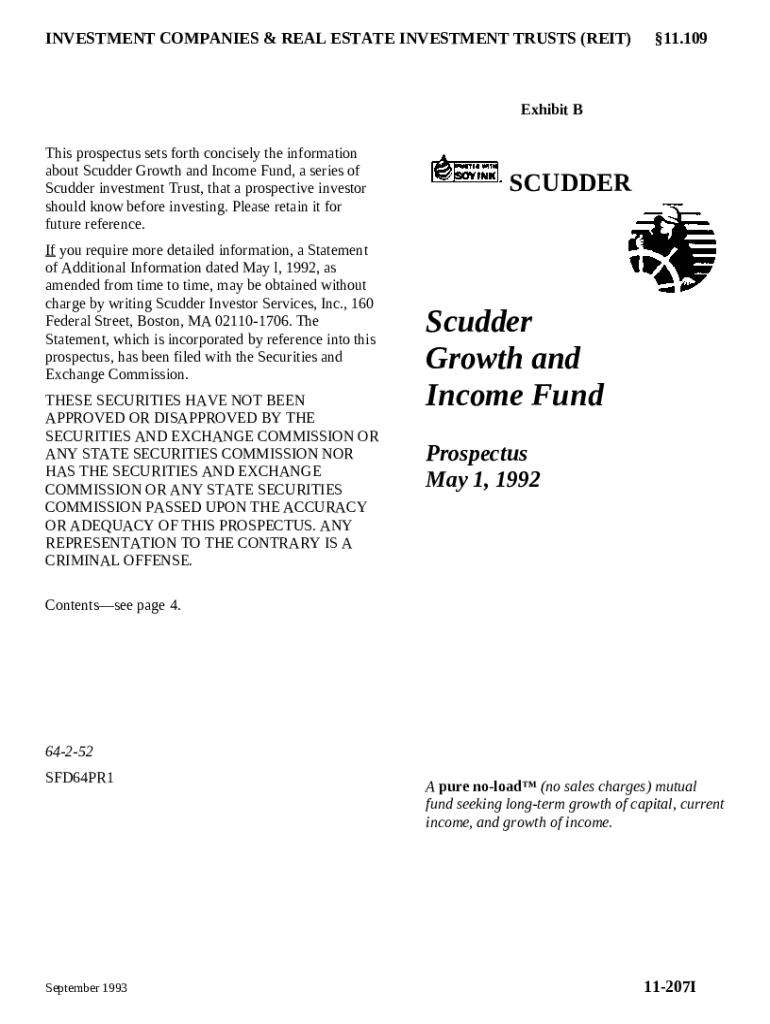 Get the free Prospectus of Scudder growth and income fund template