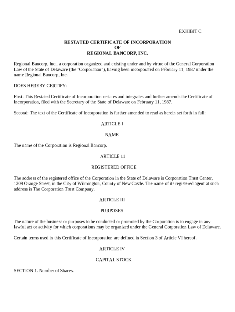A restated certificate of incorporation is a revised document that consolidates all amendments to a corporation's original certificate of incorporation into a single, comprehensive document.