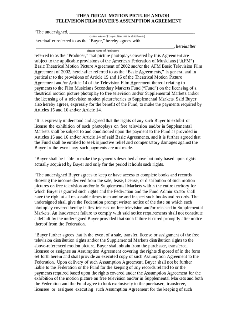 Understanding the theatrical motion picture and television film buyer's assumption agreement