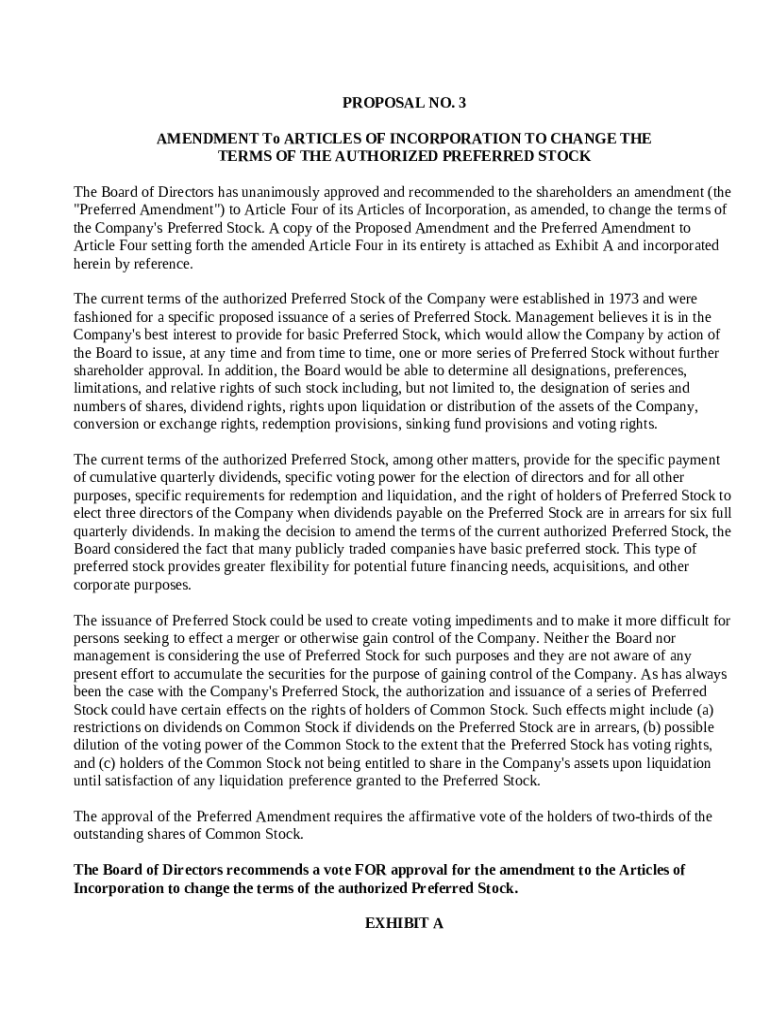 This sample form, a detailed Amendment to Articles of Incorporation to Change the Terms of the Authorized Preferred Stock document, is a model for use in corporate matters. The language is easily