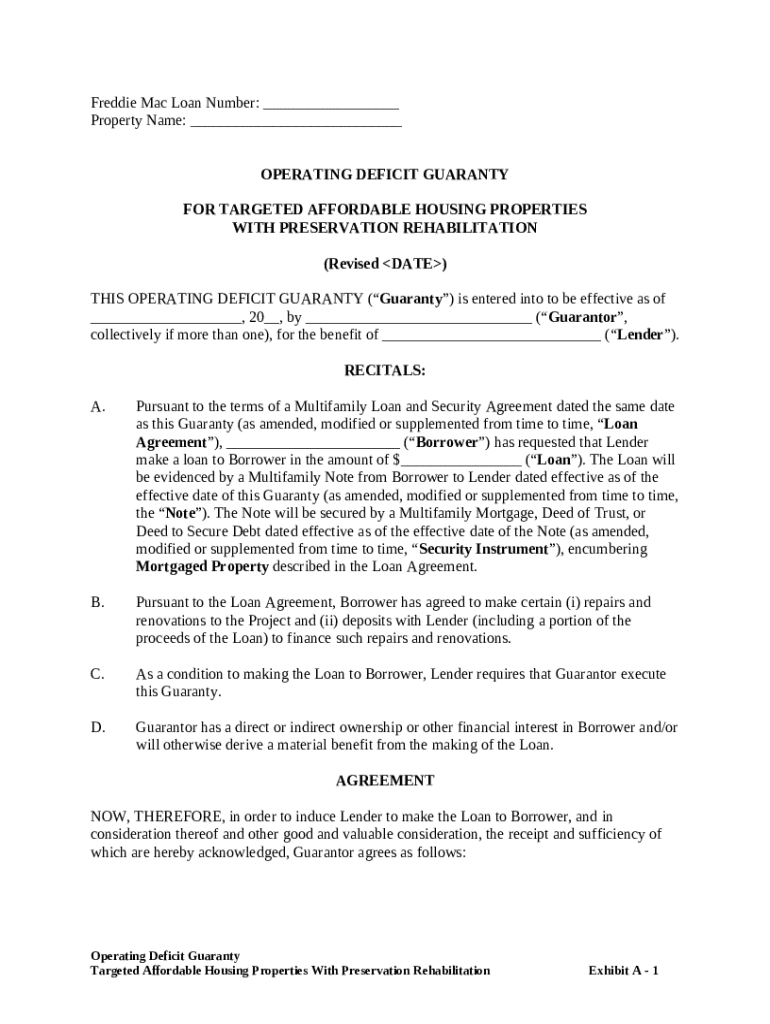 Get the free Operating Deficit Guaranty: Targeted Affordable Housing Properties With Preservation...