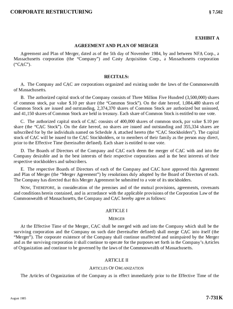Get the free Agreement and Plan of Merger by NFA Corp. and Casty Acquisition Corp. template