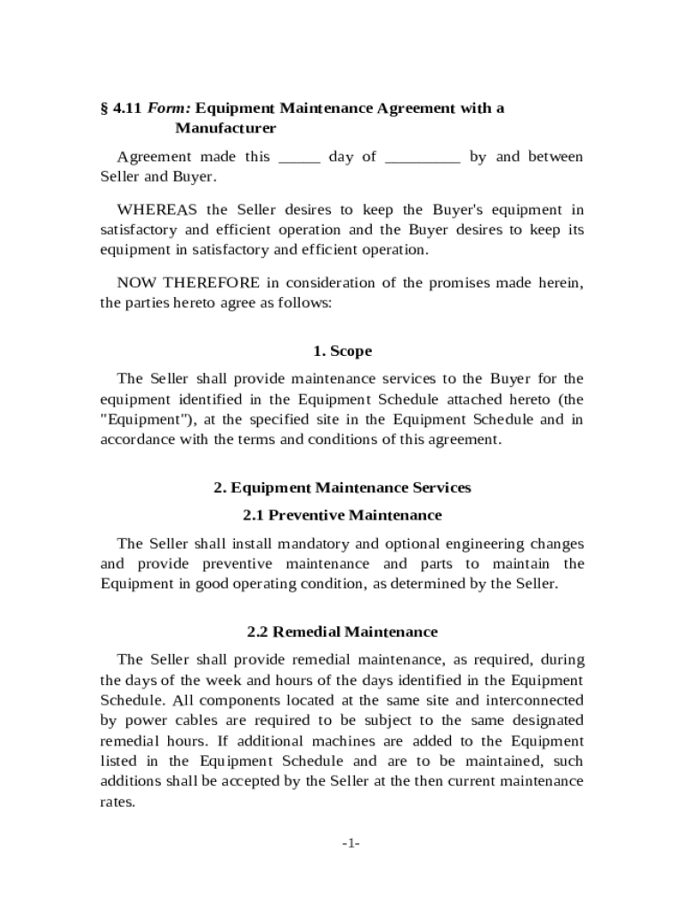 Get the free Equipment Maintenance Agreement with a Manufacturer template