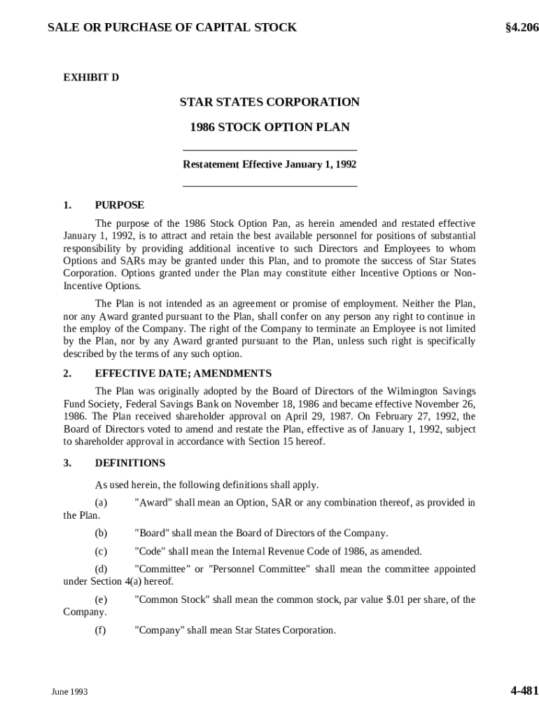Get the free Stock Option Plan of Star States Corporation template