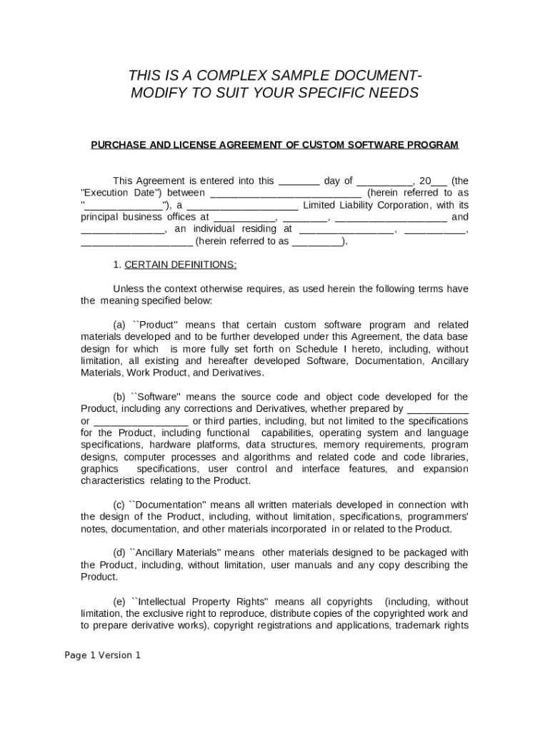 Modifying a sample purchase and license agreement often requires attention to detail. Start by assessing the standard clauses and ensuring they meet your specific needs. It’s important to tailor the document based on factors such as the scope of usage, duration, and payment details. Be cautious of common pitfalls such as ambiguous language, which can lead to misunderstandings or legal disputes.