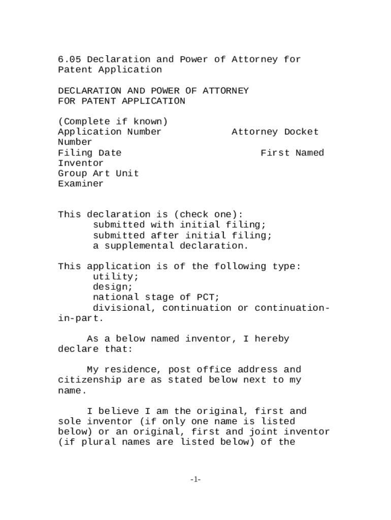 Get the free Declaration and Power of Attorney for Patent Application template