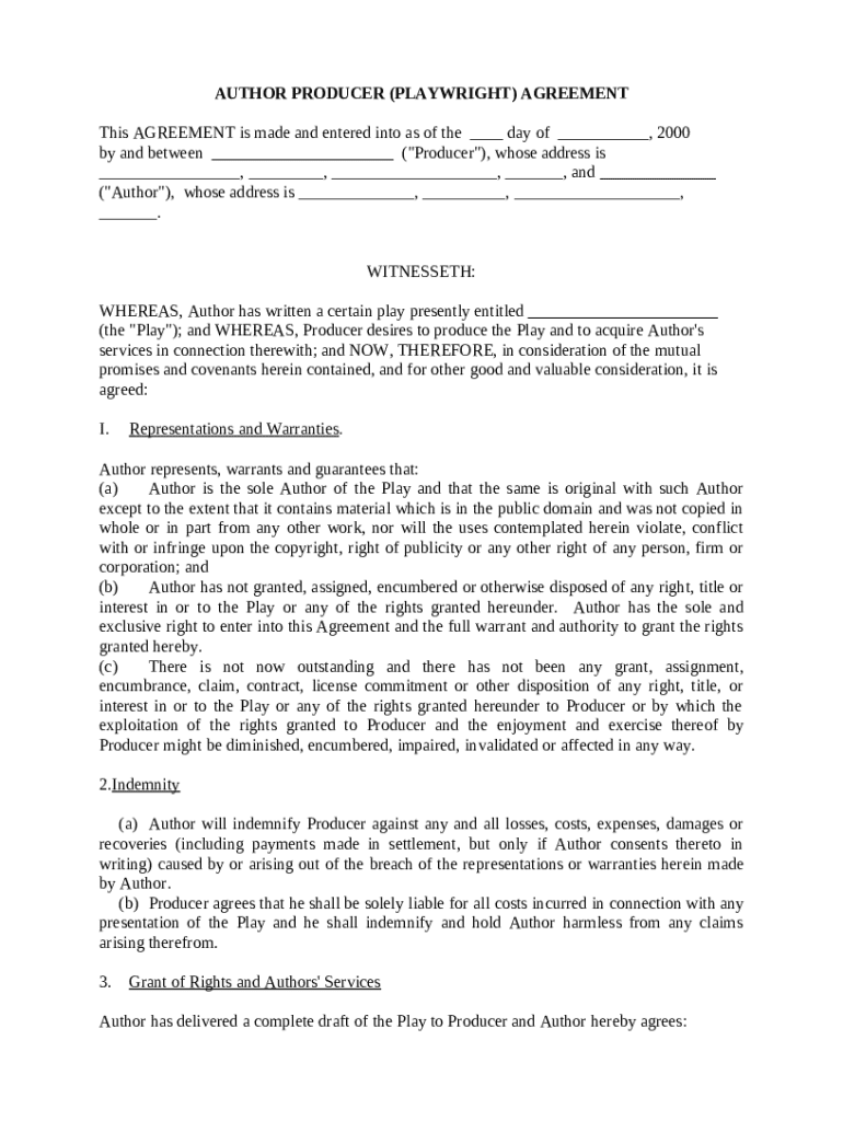 Get the free Author Producer - Playwright - Agreement template