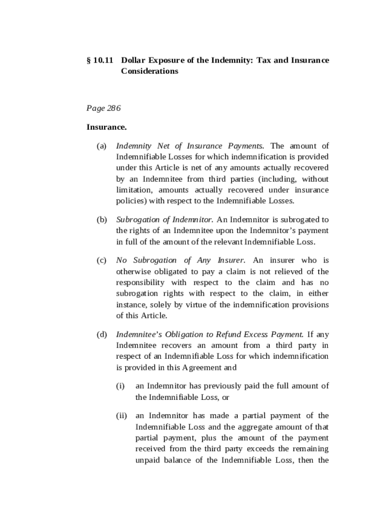 Get the free Indemnity Provisions - Dollar Exposure of the Indemnity regarding Tax and Insurance ...