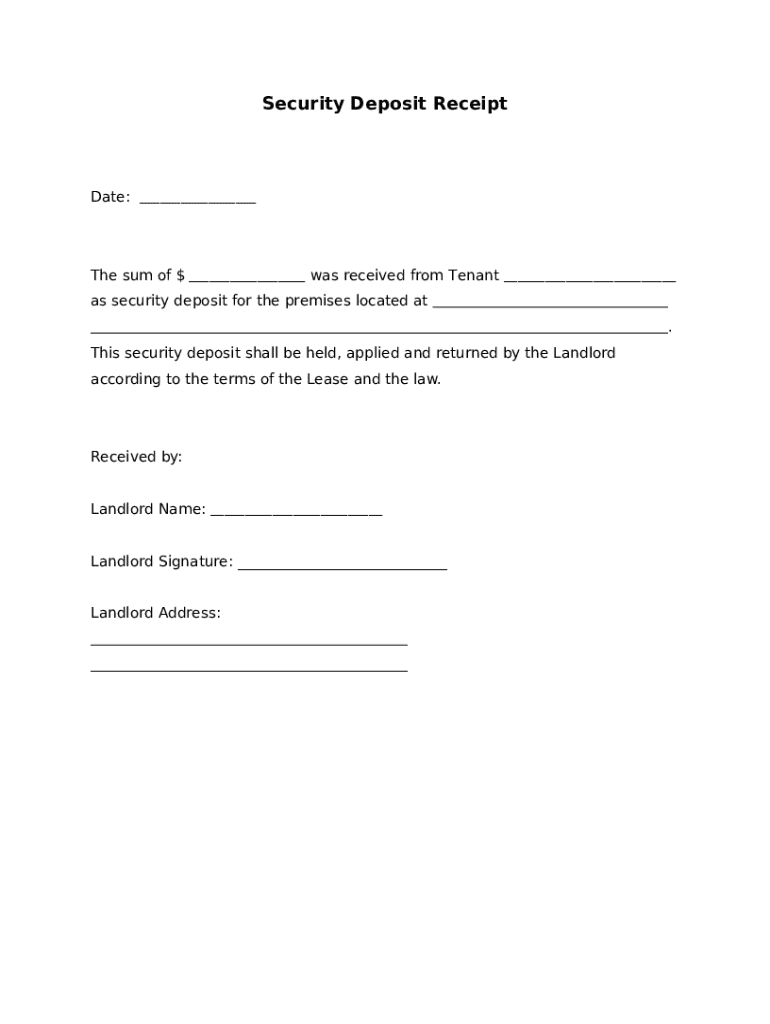 A security deposit receipt is crucial in defining the relationship between landlords and tenants. It serves as an official record that clarifies legal obligations and rights concerning the monetary deposit made by the tenant. This documentation not only protects landlords but also tenants, ensuring that both parties are aware of their responsibilities.