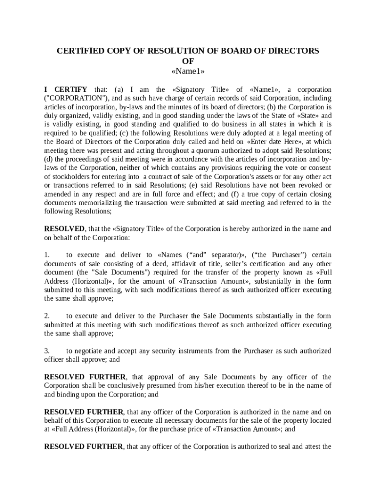 Get the free Resolution By Board Of Directors Of Authorizing The Sale Of Real Estate template