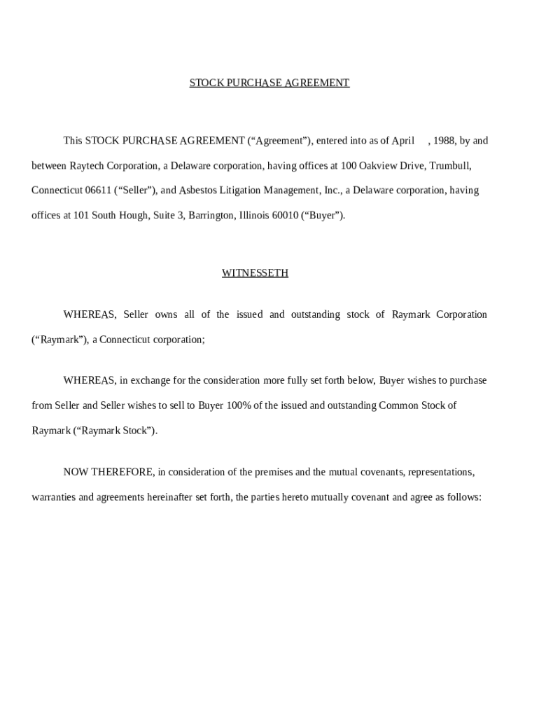 A stock purchase agreement is a legal document between a buyer and a seller stipulating the terms of a stock transaction. This agreement details the obligations of both parties, ensuring that the exchange occurs smoothly and legally. Understanding this framework is essential for both individual investors and corporations engaging in the buying or selling of shares.