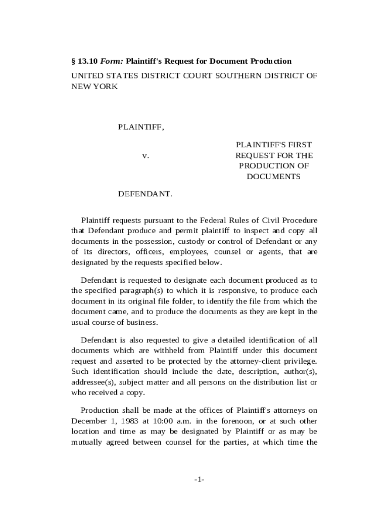 Plaintiffs request for document form guide