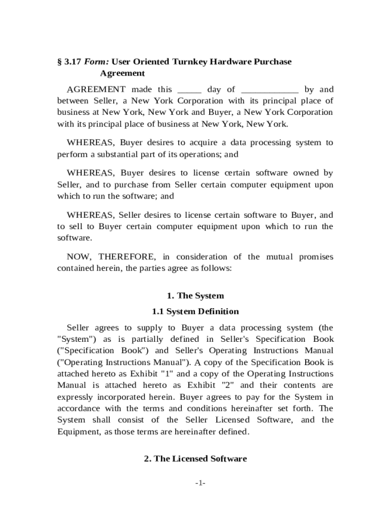 Get the free User Oriented Turnkey Hardware Purchase Agreement template