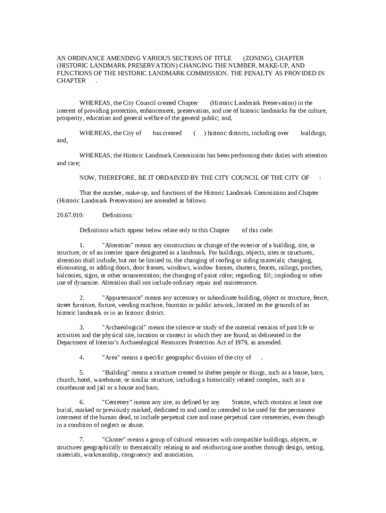 Understanding critical definitions is vital when navigating the ordinance amending historic form form. Key terms clarify the scope and application of the ordinance.