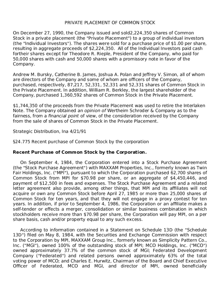 This sample form, a detailed Private Placement of Common Stock document, is a model for use in corporate matters. The language is easily adapted to fit your specific circumstances. Available in several