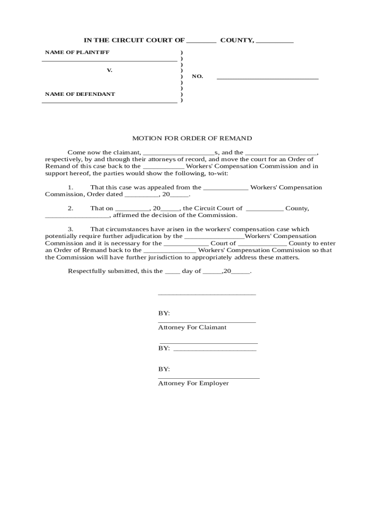 Get the free Motion for Order of Remand for further consideration template