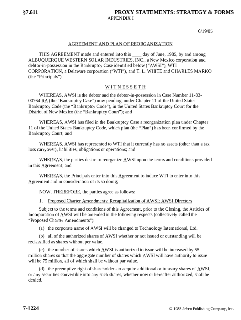 Comprehensive Guide to Agreement and Plan of Reorganization