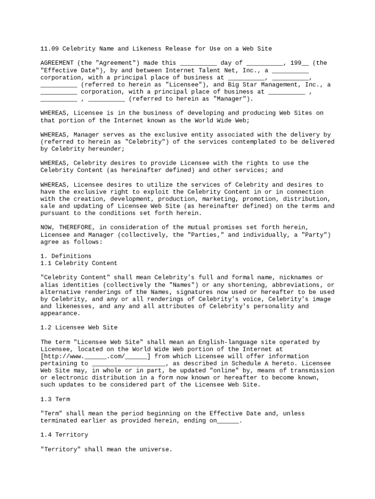 Clarifies how and where the celebrity’s image or name may be utilized.