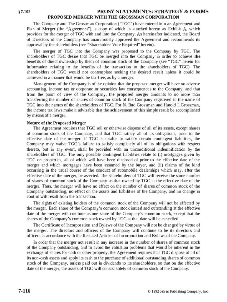 Get the free Proposed merger with the Grossman Corporation template