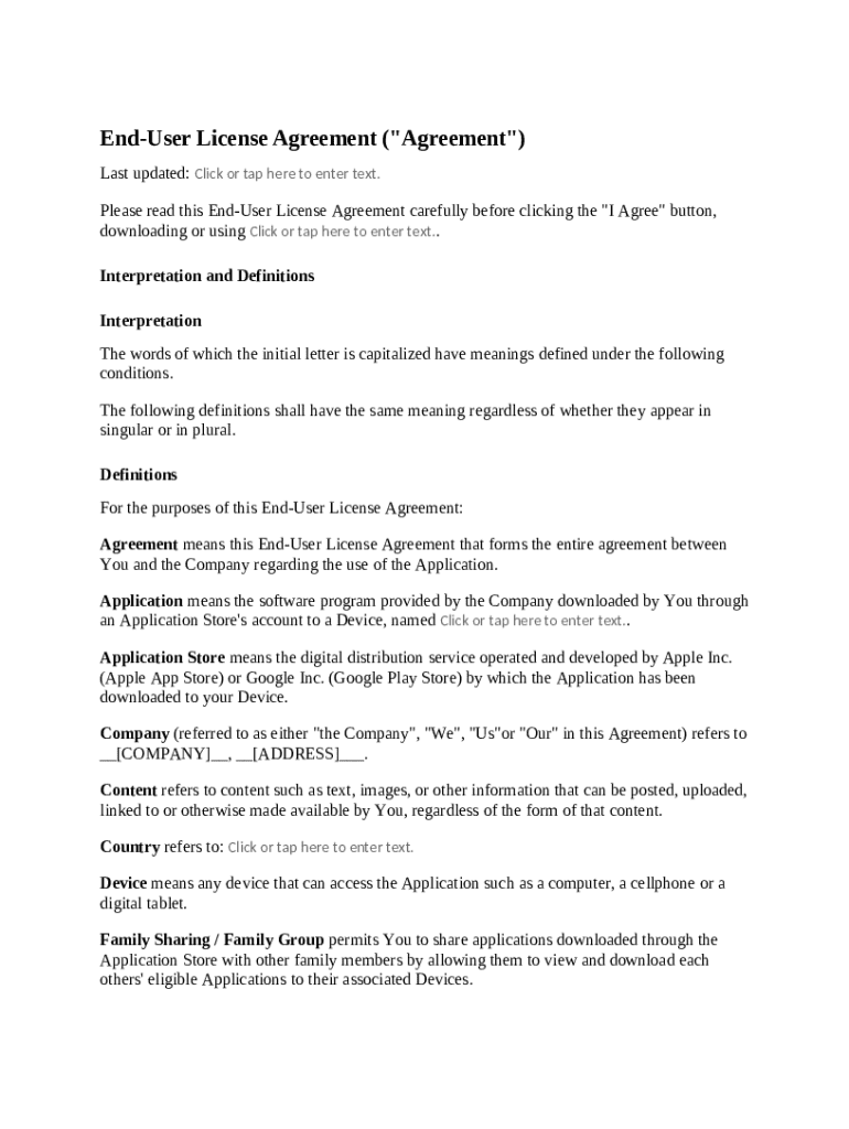 Get the free EULA - End User License Agreement template