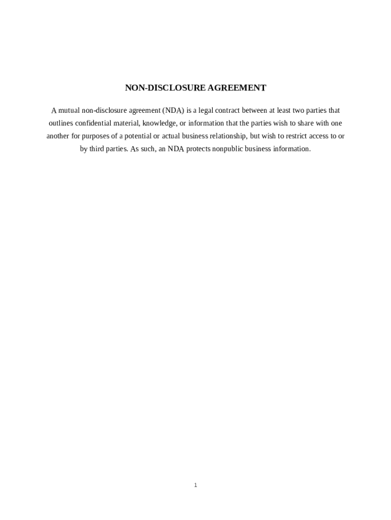 A mutual non-disclosure agreement (NDA) is a legal contract between at least two parties that outlines confidential material, knowledge, or information that the parties wish to share with one another