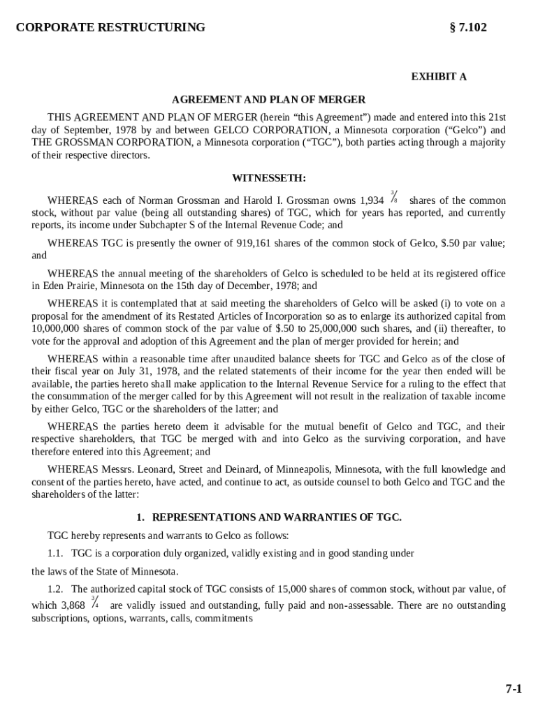 Identification of GELCO CORPORATION and THE GROSSMAN CORPORATION, along with their respective roles in the merger process.