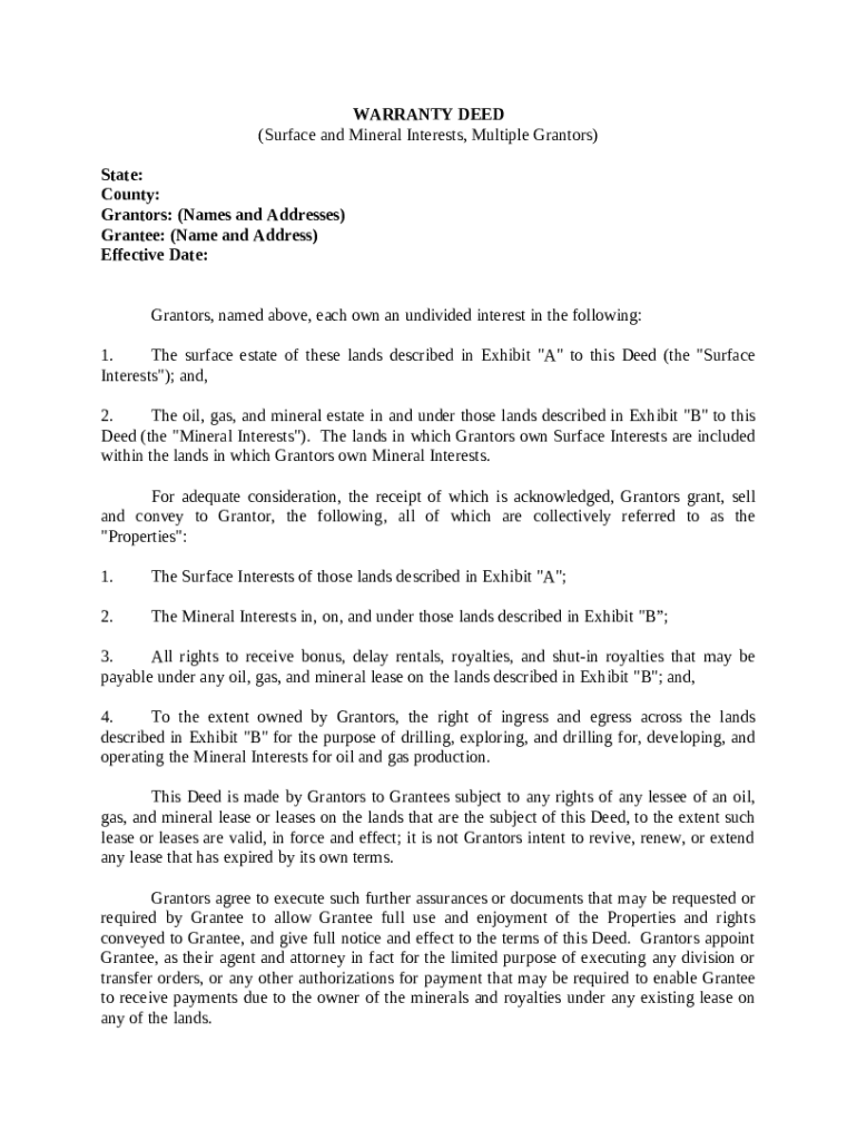 Get the free Warranty Deed for Surface and Mineral Interests with Multiple Grantors template