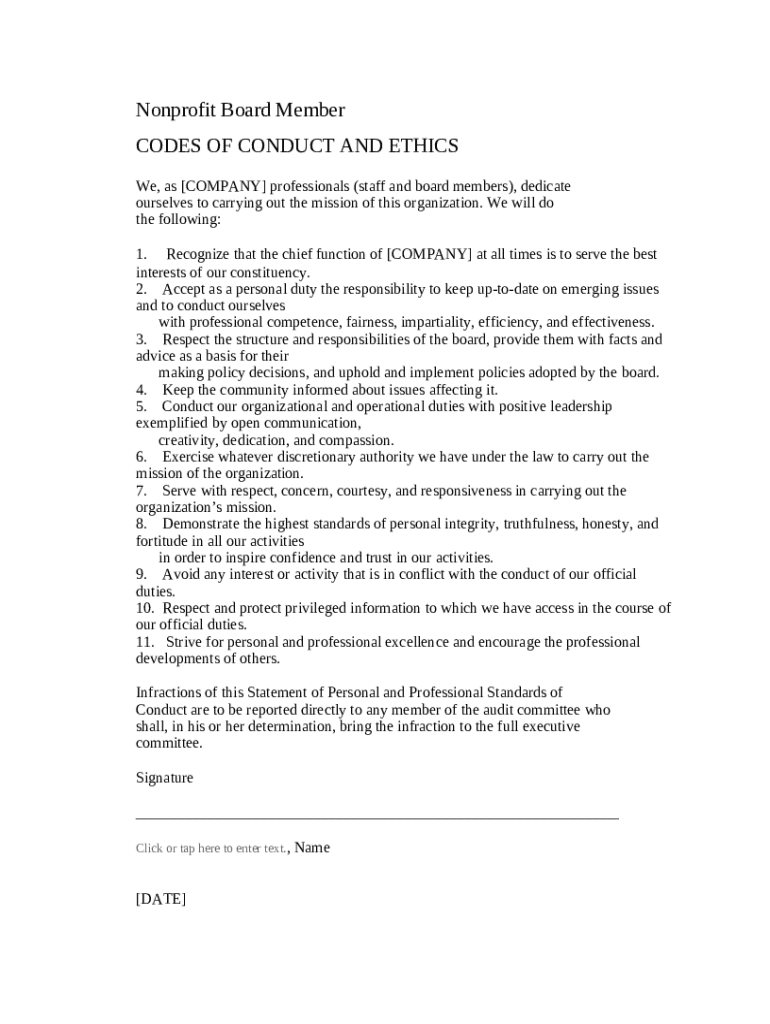 Get the free Nonprofit - Conduct Policies for Board Members template