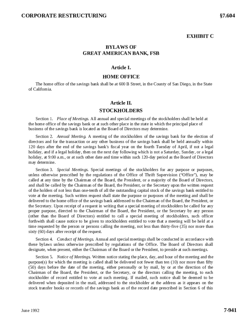 Comprehensive Guide to the Bylaws of Great American Bank FSB
