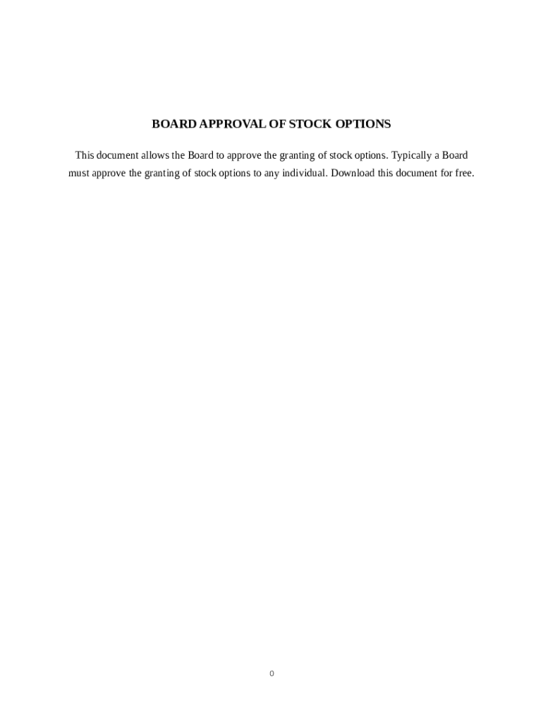 This document allows the Board to approve the granting of stock options. Typically a Board must approve the granting of stock options to any individual. Download this document for free.