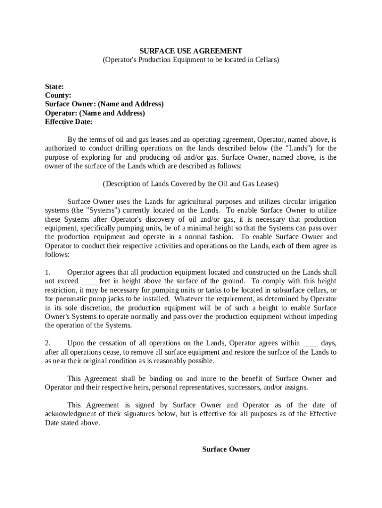 Get the free Surface Use Agreement when Operator's Production Equipment to Be Located in Cellars ...