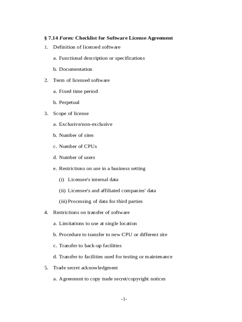Navigating the complex world of software licensing can be daunting. To simplify the process, this comprehensive checklist for software license agreements will guide you through the essential elements required for filling out a software license form accurately. Whether you are a licensor or a licensee, ensuring that all criteria are met will protect your rights and obligations.