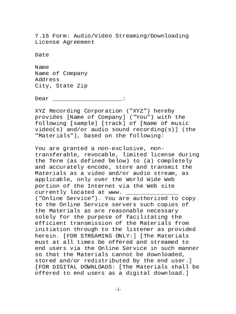 Get the free Audio Video Streaming - Downloading License Agreement template