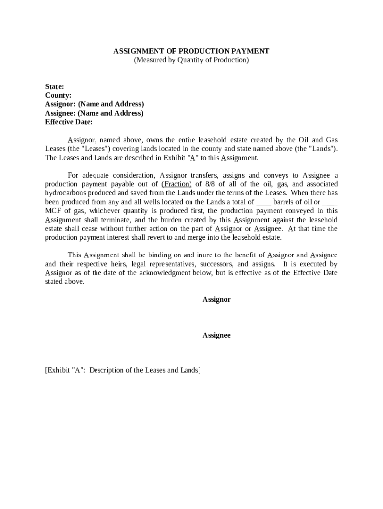 Get the free Assignment of Production Payment Measured by Quantity of Production template