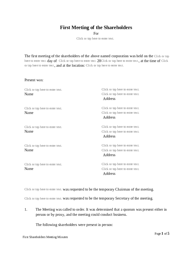 Get the free First Meeting Minutes of Shareholders template