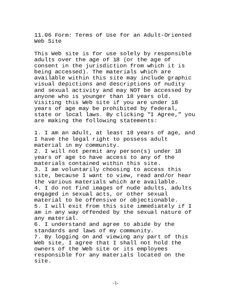 Get the free Terms of Use for an Adult Oriented Web Site template