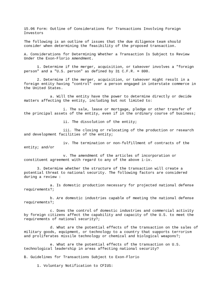 Get the free Outline of Considerations for Transactions Involving Foreign Investors template