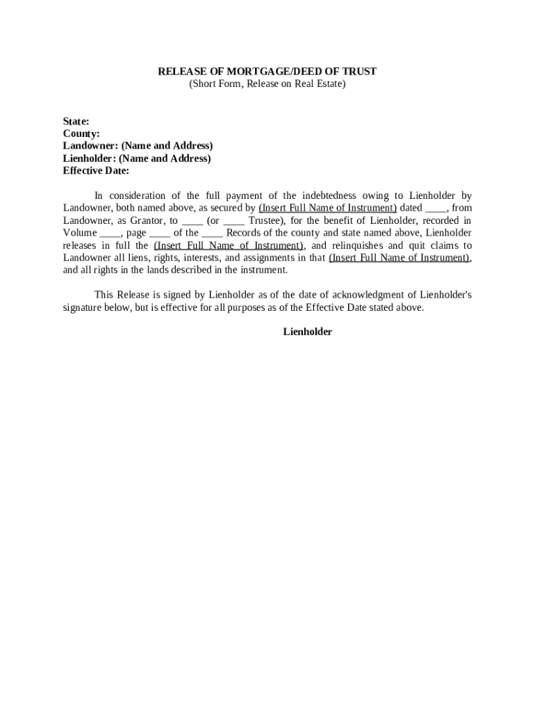 A release of mortgage deed is a legal document that terminates a mortgage agreement, indicating that the borrower has fulfilled their repayment obligations.