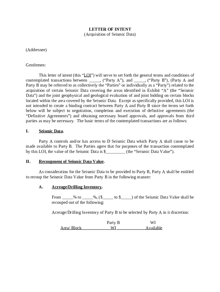 Having a template can streamline the LOI drafting process. Below is an example based on the acquisition of Seismic Data.