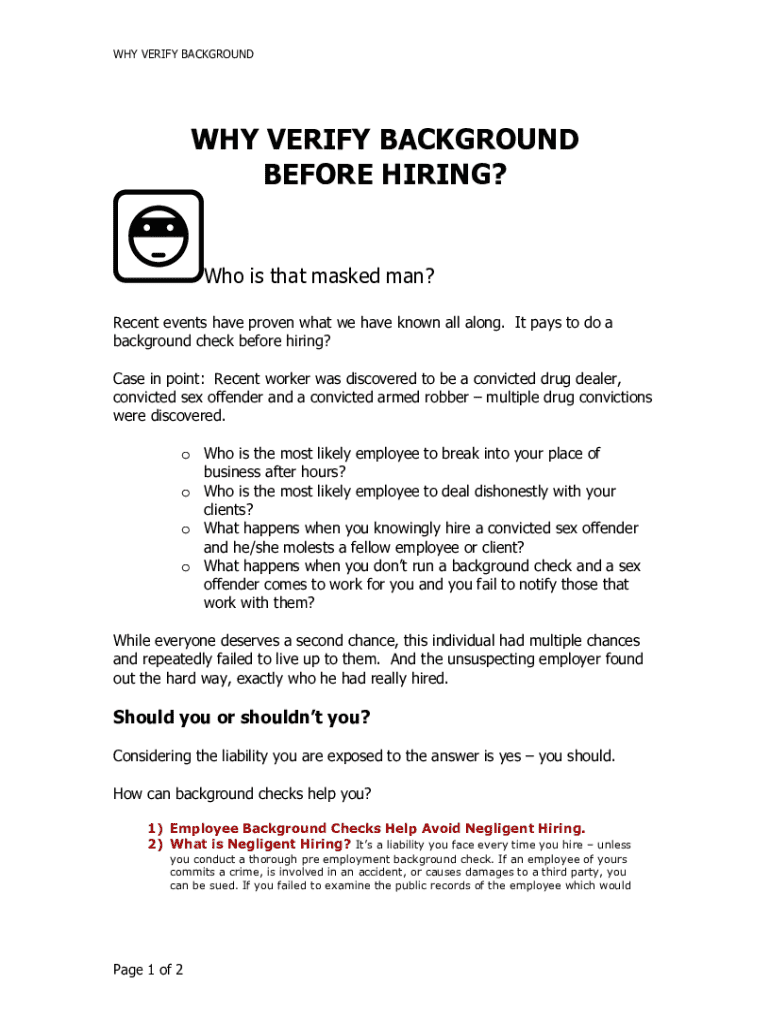 Get the free Why Verify Background Pamphlet - Training For Employer